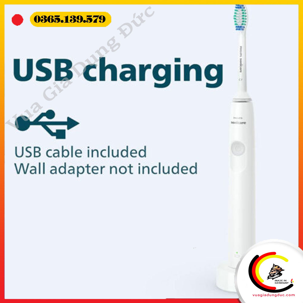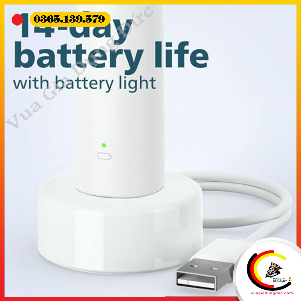 Bàn chải điện có thời lượng pin lên đến 14 ngày chỉ sau một lần sạc đầy, đáp ứng tốt nhu cầu sử dụng hằng ngày. Nhờ đó, người dùng không cần sạc pin thường xuyên, đặc biệt tiện lợi khi đi du lịch hoặc công tác dài ngày. Bộ sạc USB đi kèm giúp dễ dàng sạc pin ở nhiều nguồn khác nhau.
