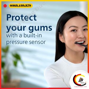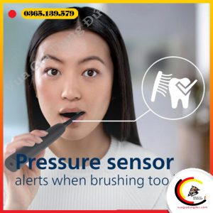 - Cảm biến lực ấn tích hợp phát hiện lực chải quá mạnh, tự động giảm độ rung và phát âm nhắc nhở giúp bảo vệ nướu khỏi tổn thương.