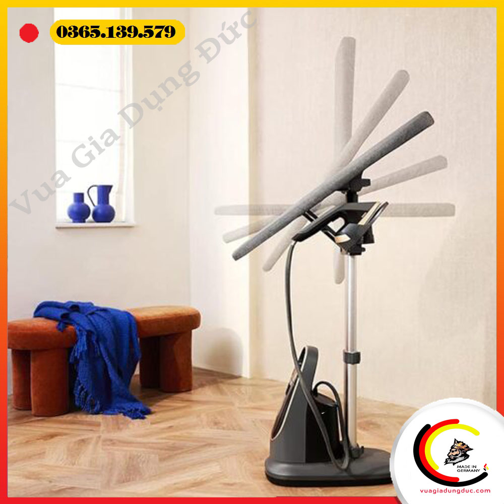 Đầu bàn là nhẹ chỉ bằng khoảng một nửa so với bàn ủi hơi nước thông thường, thiết kế công thái học giúp cầm nắm thoải mái trong thời gian dài. Thiết bị được tích hợp bánh xe và móc treo tiện lợi, dễ dàng di chuyển và cất giữ khi không sử dụng.