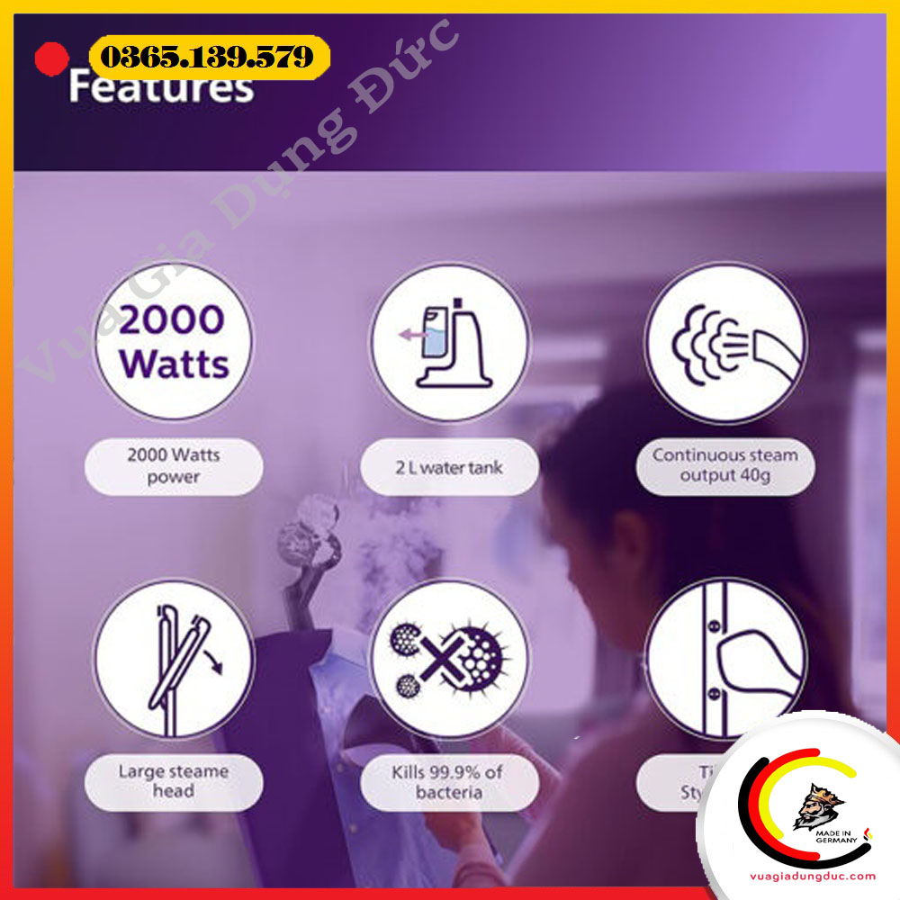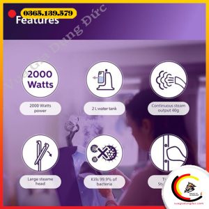 Ngoài chức năng làm phẳng, thiết bị còn giúp Diệt khuẩn 99,9%, hỗ trợ làm mới trang phục, rèm vải, thú bông và các bề mặt mềm trong gia đình, hạn chế mùi hôi và tăng độ sạch khuẩn.