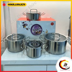 Bộ sản phẩm bao gồm 4 nồi kèm vung kính/vung thép
