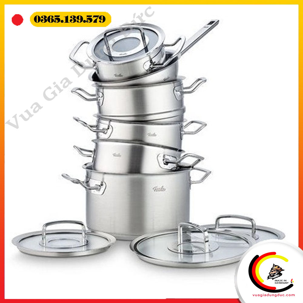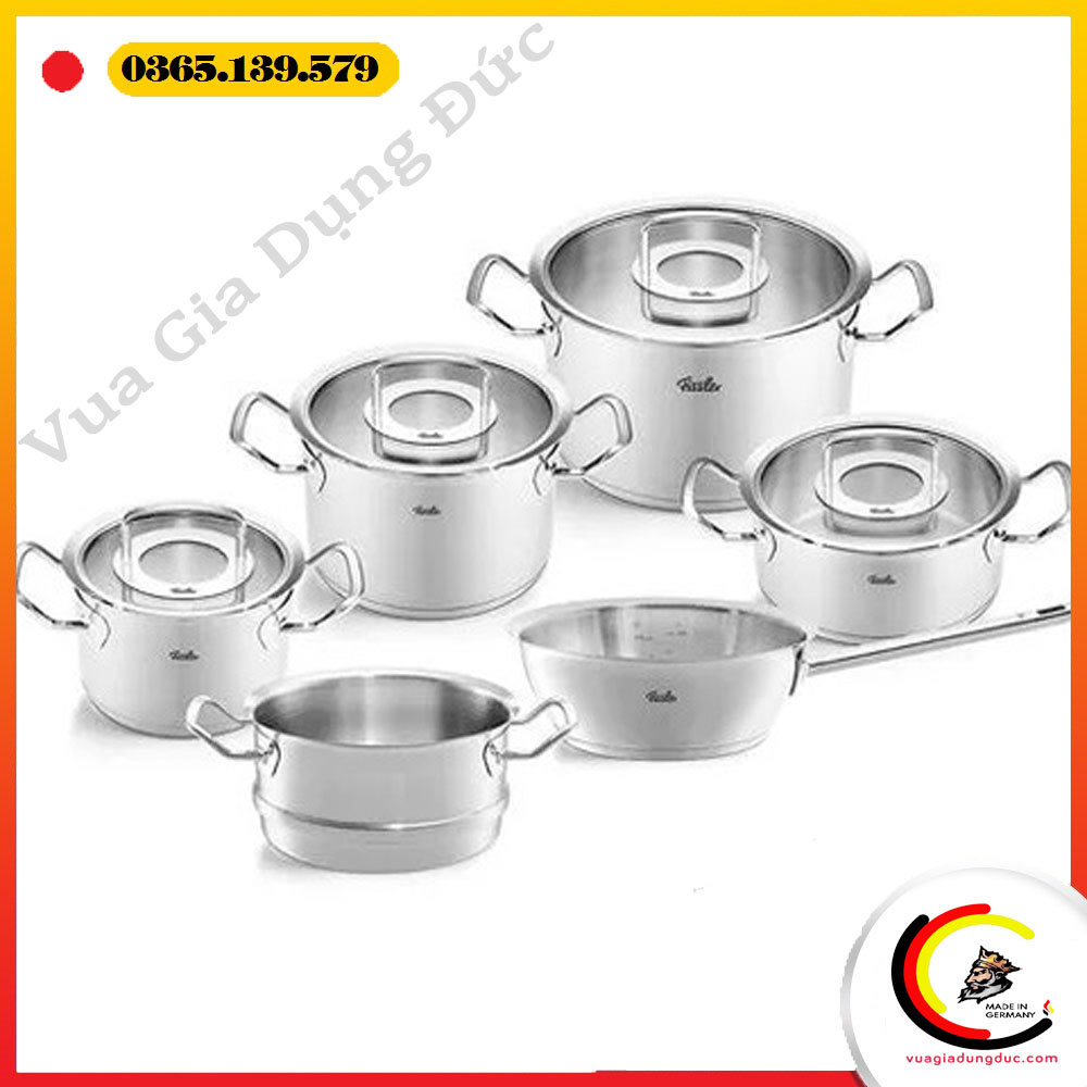 Bộ nồi Fissler Profi Set 6 món vung kính kèm xửng hấp Made in Germany là biểu tượng của đẳng cấp và chất lượng Đức.