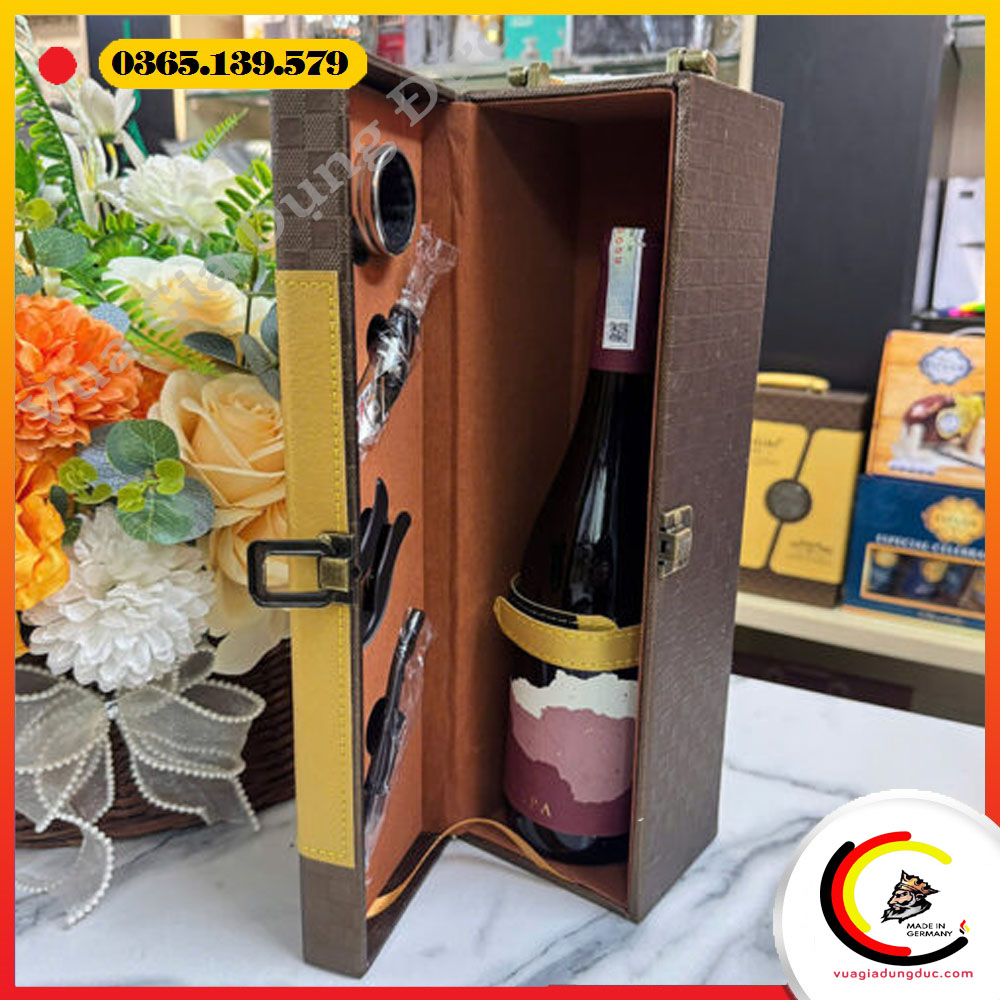 Bruno Vespa sở hữu màu ruby đậm cuốn hút, kiểu dáng chai mạnh mẽ và sang trọng. Kết hợp cùng hộp da cao cấp, sản phẩm rất phù hợp để làm quà biếu Tết, quà doanh nghiệp hoặc dùng trong các bữa tiệc gia đình.