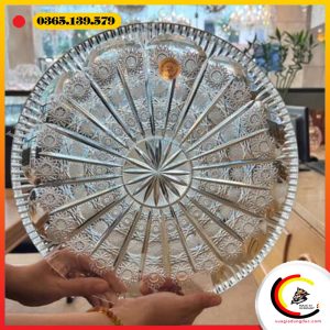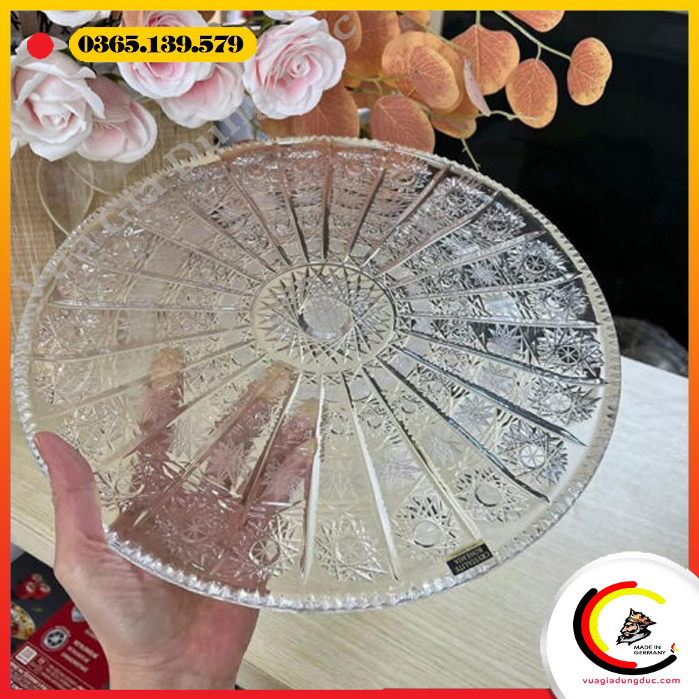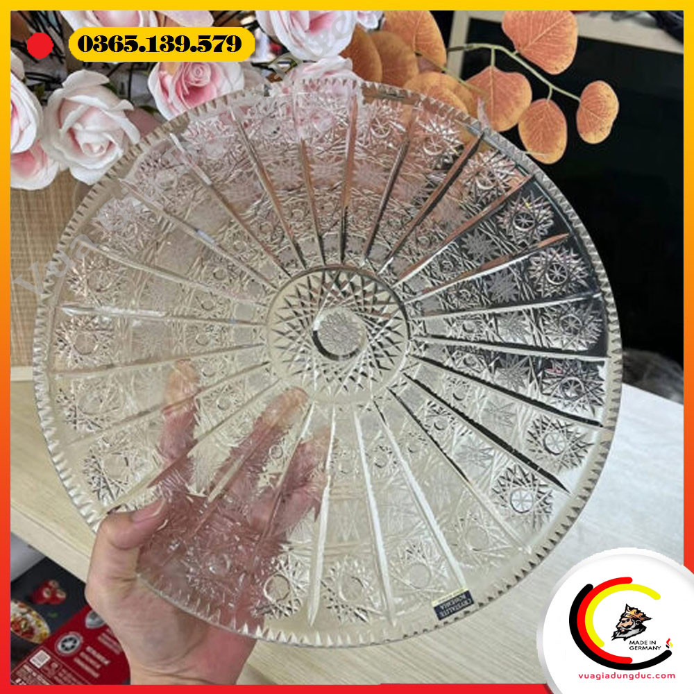 Đĩa pha lê Bohemia hoa văn mài size 34cm (hình bông tuyết)
