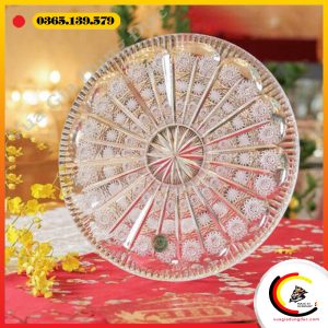 Đĩa pha lê Bohemia hoa văn mài size 34cm (hình bông tuyết)