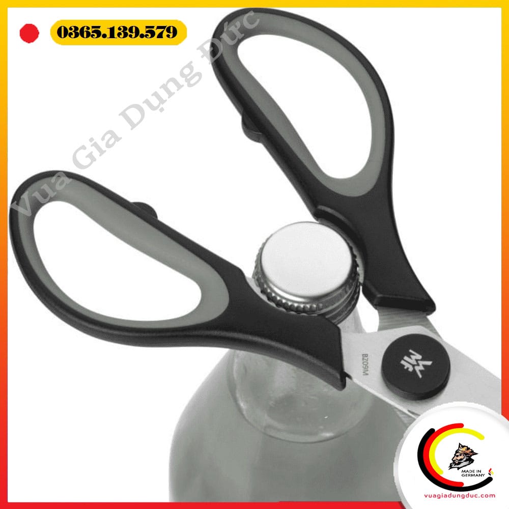 Phần giữa của Kéo WMF Touch có thiết kế hình oval răng cưa giúp bạn có thể dễ dàng mở nắp các chai, hộp dễ dàng như dung cụ mở nắp khác.