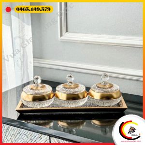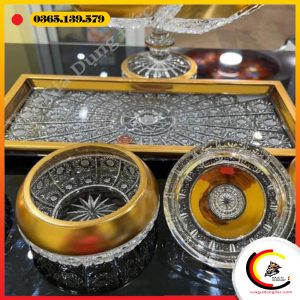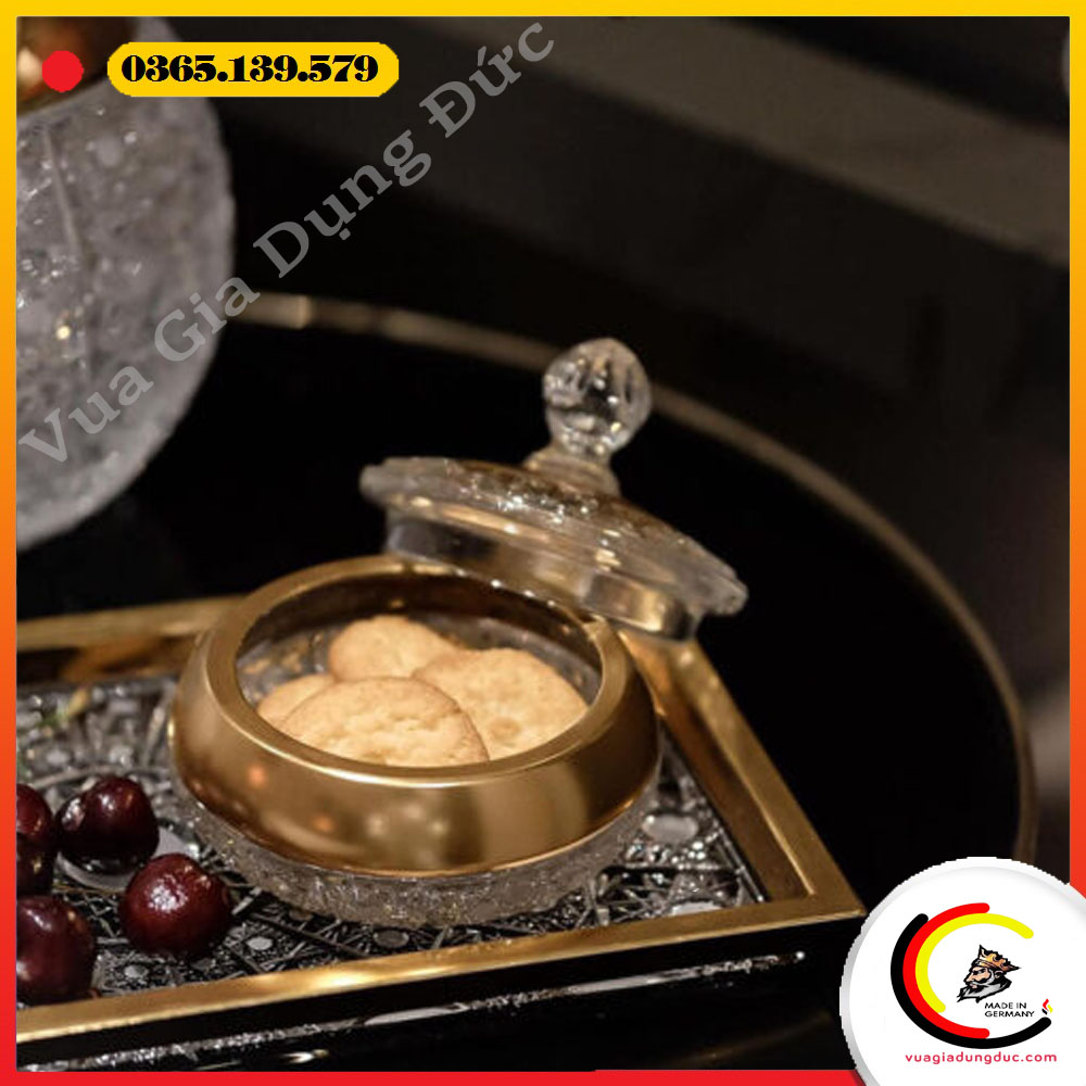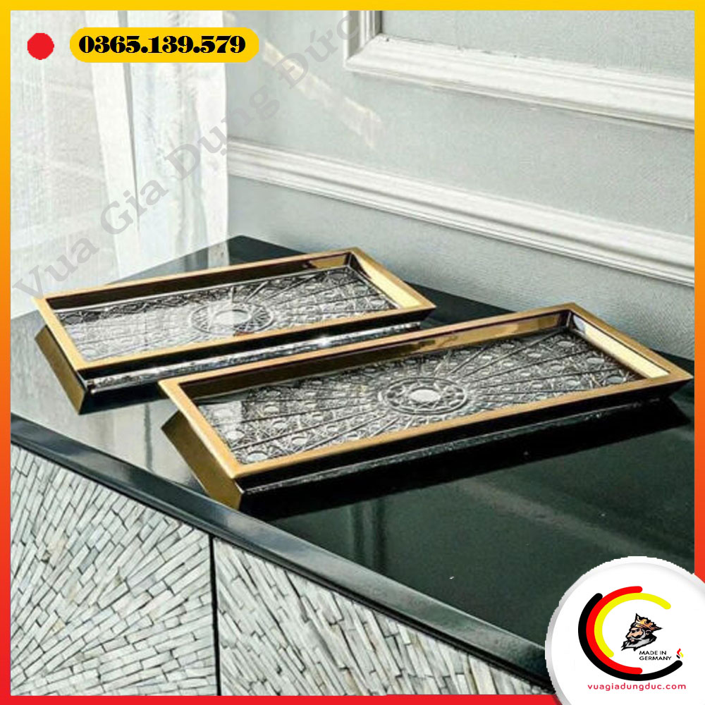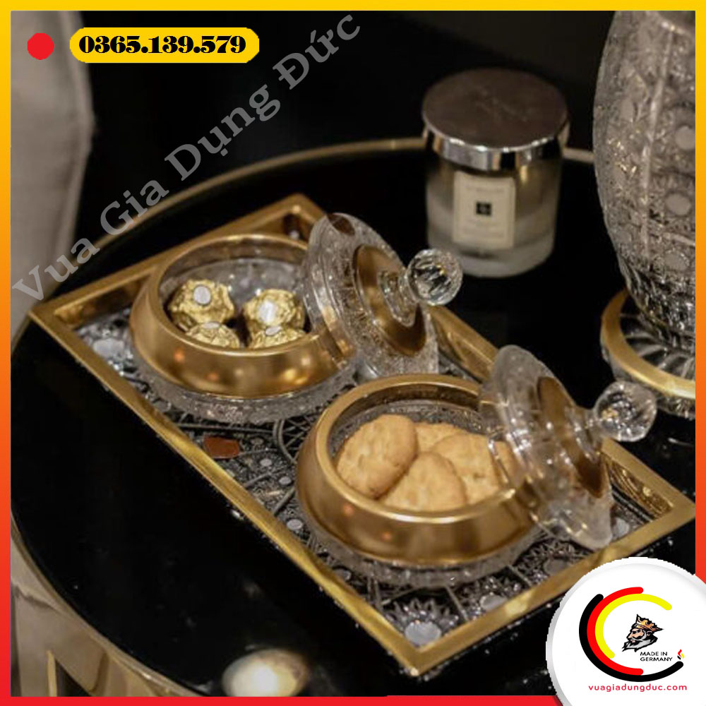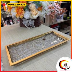 Viền khay được mạ vàng nổi bật, vừa tăng giá trị thẩm mỹ vừa tôn lên vẻ đẳng cấp khác biệt so với các dòng khay pha lê thông thường.