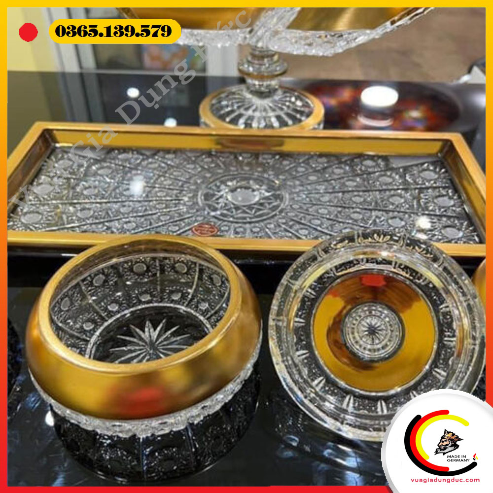 Đặc điểm khay chữ nhật pha lê mài mạ vàng Bohemia