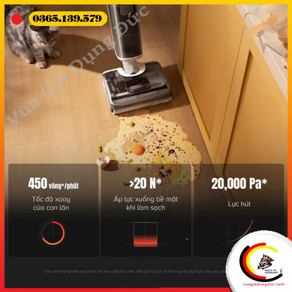 – Lực hút 20.000 Pa, tối ưu hóa khả năng làm sạch trên nhiều loại bề mặt