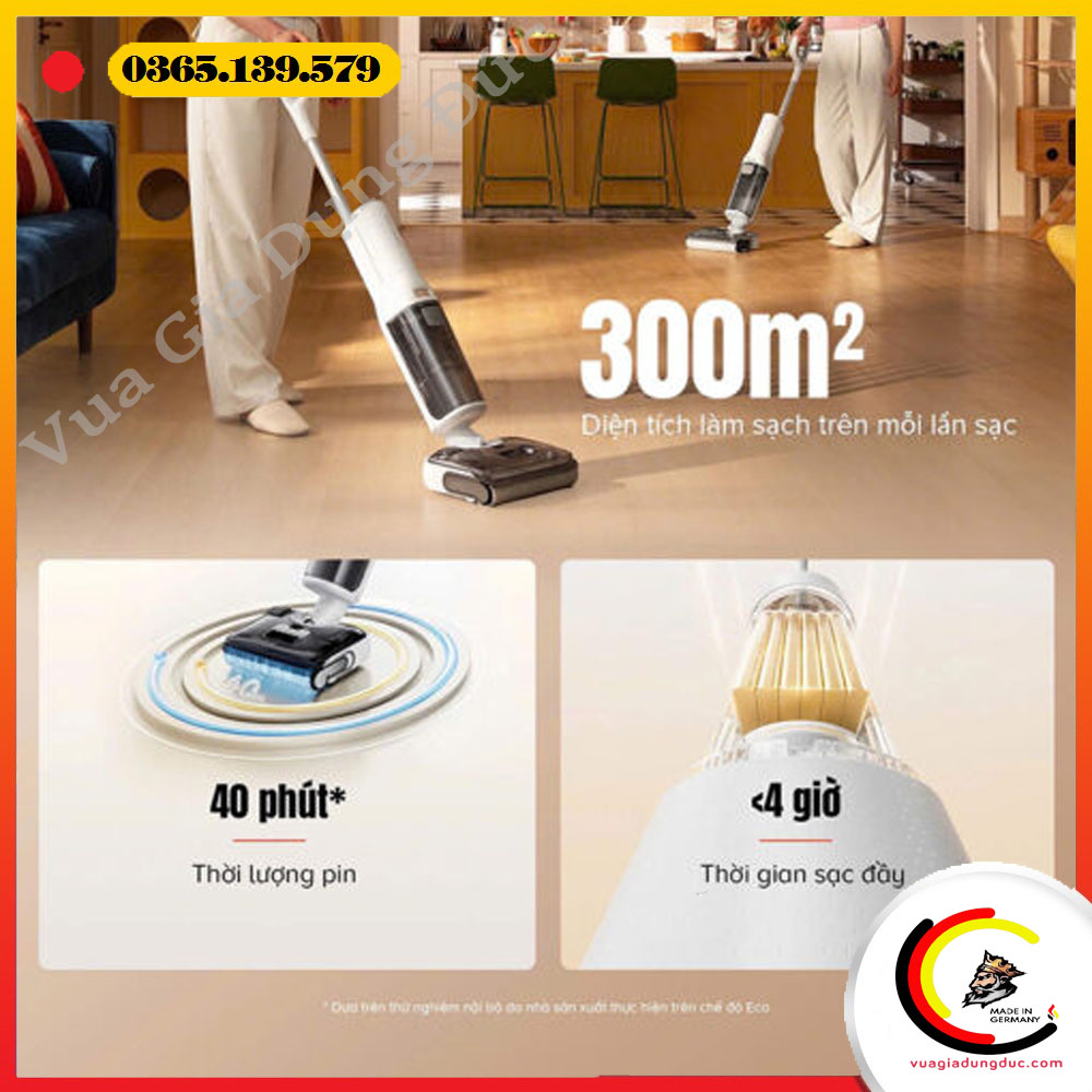 - Kích thước máy kèm trạm sạc: 330 x 316 x 1157mm