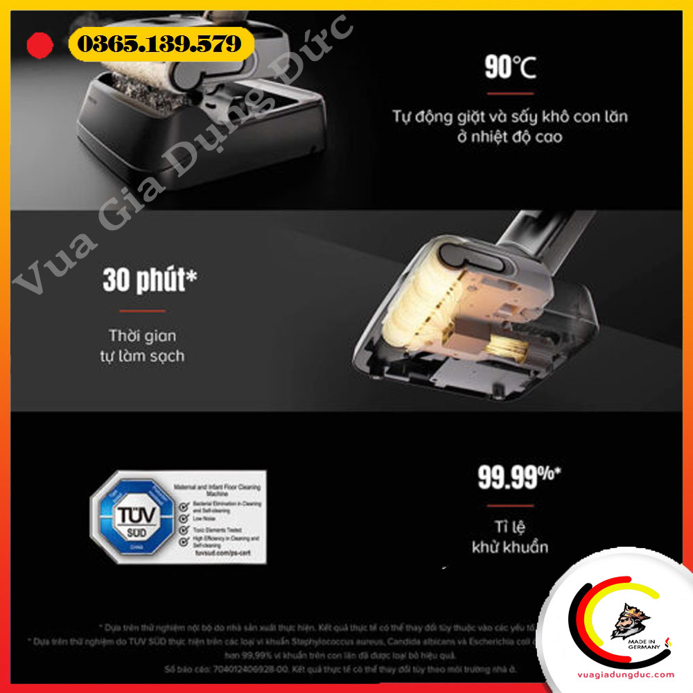 – Giặt giẻ bằng nước nóng 90°C, loại bỏ vi khuẩn mà không cần tự giặt