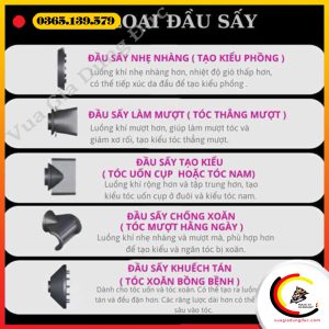 - Đầu khuếch tán: Dành riêng cho tóc xoăn, giúp giữ lọn mềm mại, bồng bềnh.