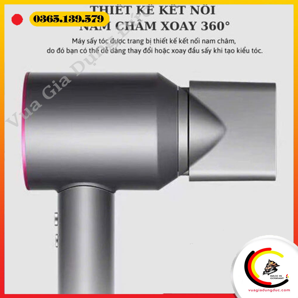 Thiết kế đầu sấy gắn kết bằng nam châm, dễ dàng thay đổi và cố định chắc chắn trong quá trình sử dụng, tăng thêm tính tiện dụng khi tạo kiểu tóc.