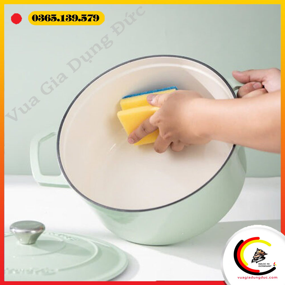 • Tráng men sứ cao cấp: Bề mặt mịn bóng, dễ lau chùi, không bám màu, chống dính cực tốt.