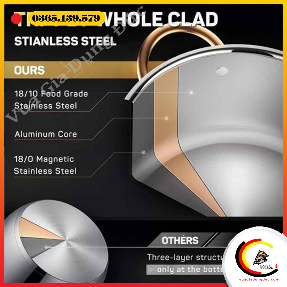 • Chất liệu: Inox 304 cao cấp, đáy 3 lớp TRI-PLY