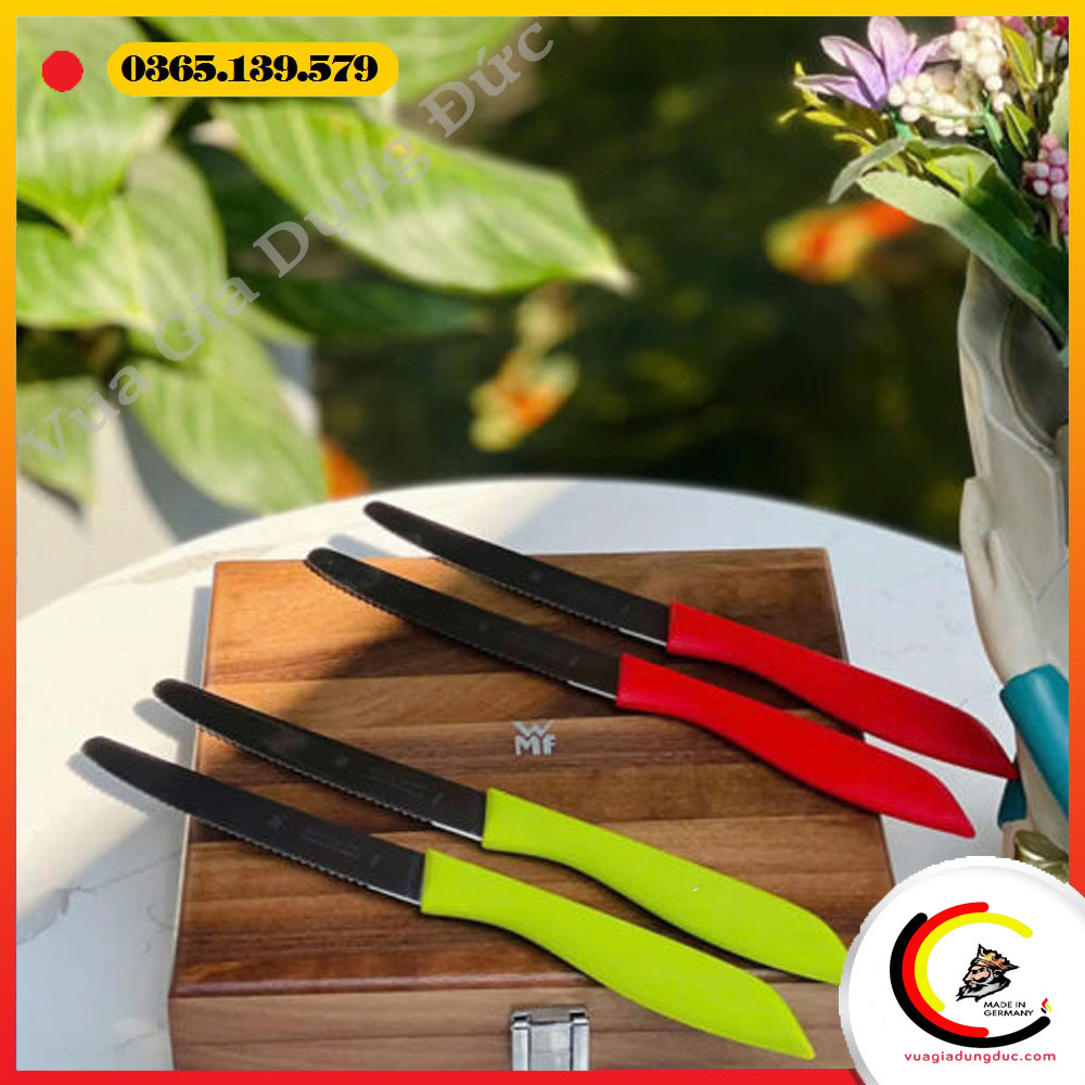 Set dao WMF được chế tác từ thép không gỉ đặc biệt của Đức, có khả năng chống axit, chống ăn mòn và duy trì độ sắc lâu dài. Bề mặt dao được phủ lớp chống dính cao cấp, giúp lưỡi dao bền gấp nhiều lần so với thép thông thường, đồng thời hạn chế bám thực phẩm khi cắt gọt, đảm bảo vệ sinh và dễ dàng lau chùi sau khi sử dụng.