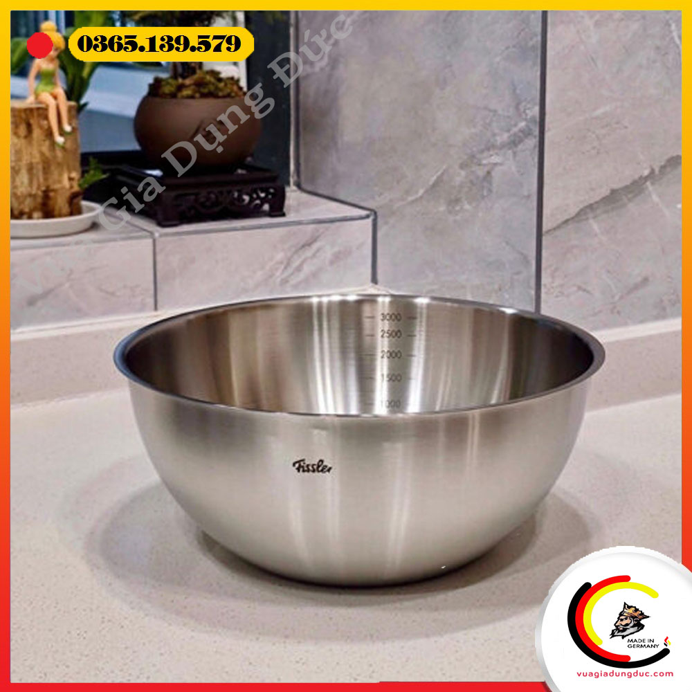 Được chế tác từ thép không gỉ 18/10 cao cấp, bộ âu trộn Fissler mang đến sự bền đẹp vượt thời gian, an toàn cho sức khỏe và dễ dàng vệ sinh sau khi sử dụng. Thiết kế đáy chống trượt chắc chắn cùng vạch chia dung tích rõ ràng giúp người dùng thuận tiện trong quá trình chế biến.