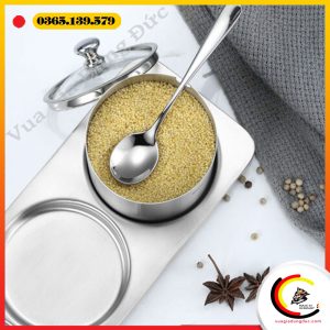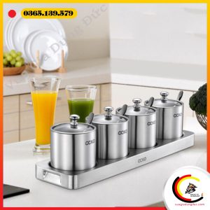 – Kiểu dáng hiện đại, đồng bộ: Bộ sản phẩm đi kèm khay inox và thìa riêng cho từng hũ, tạo sự gọn gàng và chuyên nghiệp trong cách sắp xếp gia vị.