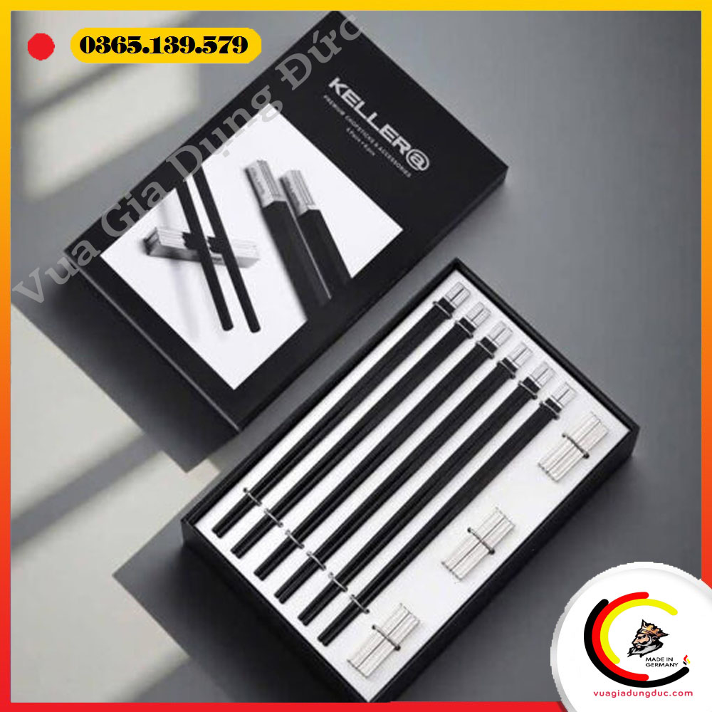 Set 6 đôi đũa kèm gác đũa đồng bộ Keller hàng hiệu Đức