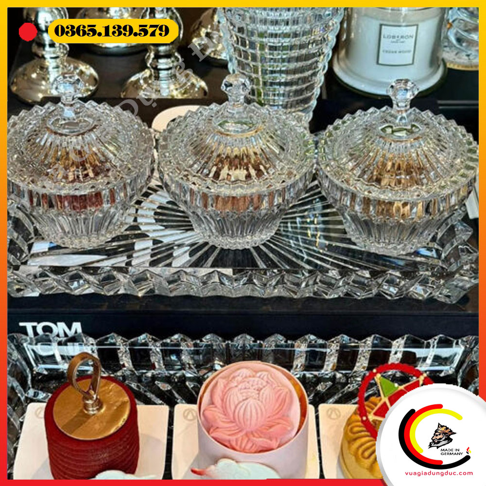 Bộ đĩa và thố pha lê Rogaska Crown Jewel mang đến vẻ đẹp sang trọng khó sánh, nhờ khả năng phản chiếu ánh sáng lấp lánh đặc trưng của pha lê cao cấp. Khi bày biện mứt, bánh, trái cây khô hoặc dùng làm vật trang trí, từng đường nét đều toát lên sự thanh lịch và đẳng cấp. Đây là điểm nhấn hoàn hảo giúp không gian tiếp khách trở nên nổi bật hơn.