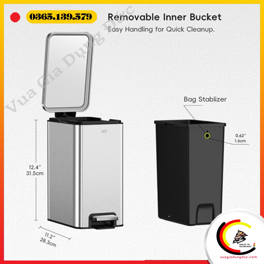 - Miếng đệm cao su và đế chống trượt: Bảo vệ mặt sàn, giữ thùng đứng vững và hạn chế trơn trượt.