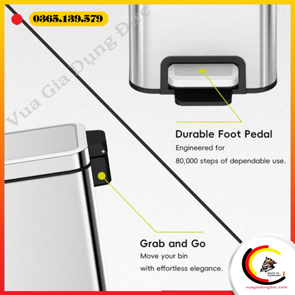 - Cơ chế đạp chân bằng đòn bẩy: Mở nắp dễ dàng mà không cần dùng tay, đảm bảo vệ sinh và tiện lợi khi sử dụng.
