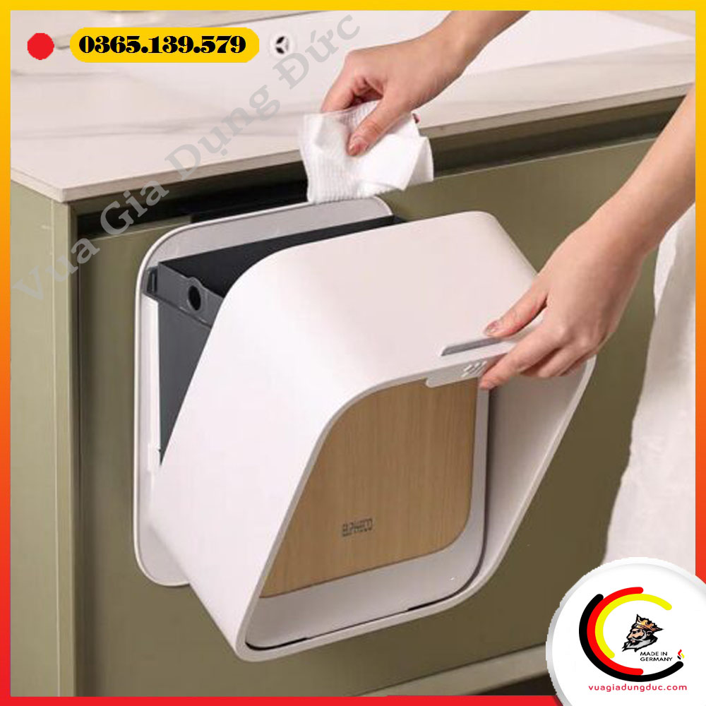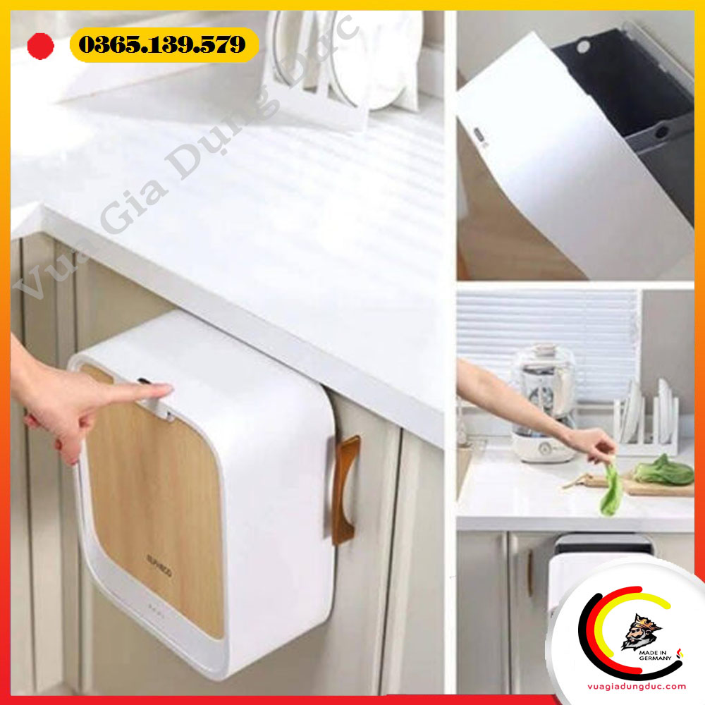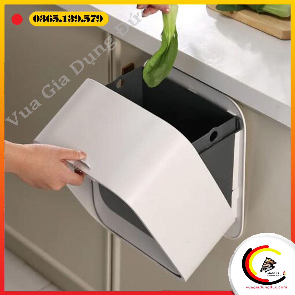 Thùng rác được thiết kế để gắn trực tiếp vào cánh tủ bằng móc treo hoặc keo dán chắc chắn, phù hợp với độ dày tủ ≤ 2,5cm. Không cần khoan lỗ hay bắt vít, bạn có thể dễ dàng tháo lắp hoặc di chuyển khi cần thiết – vô cùng linh hoạt và thân thiện với không gian bếp.
